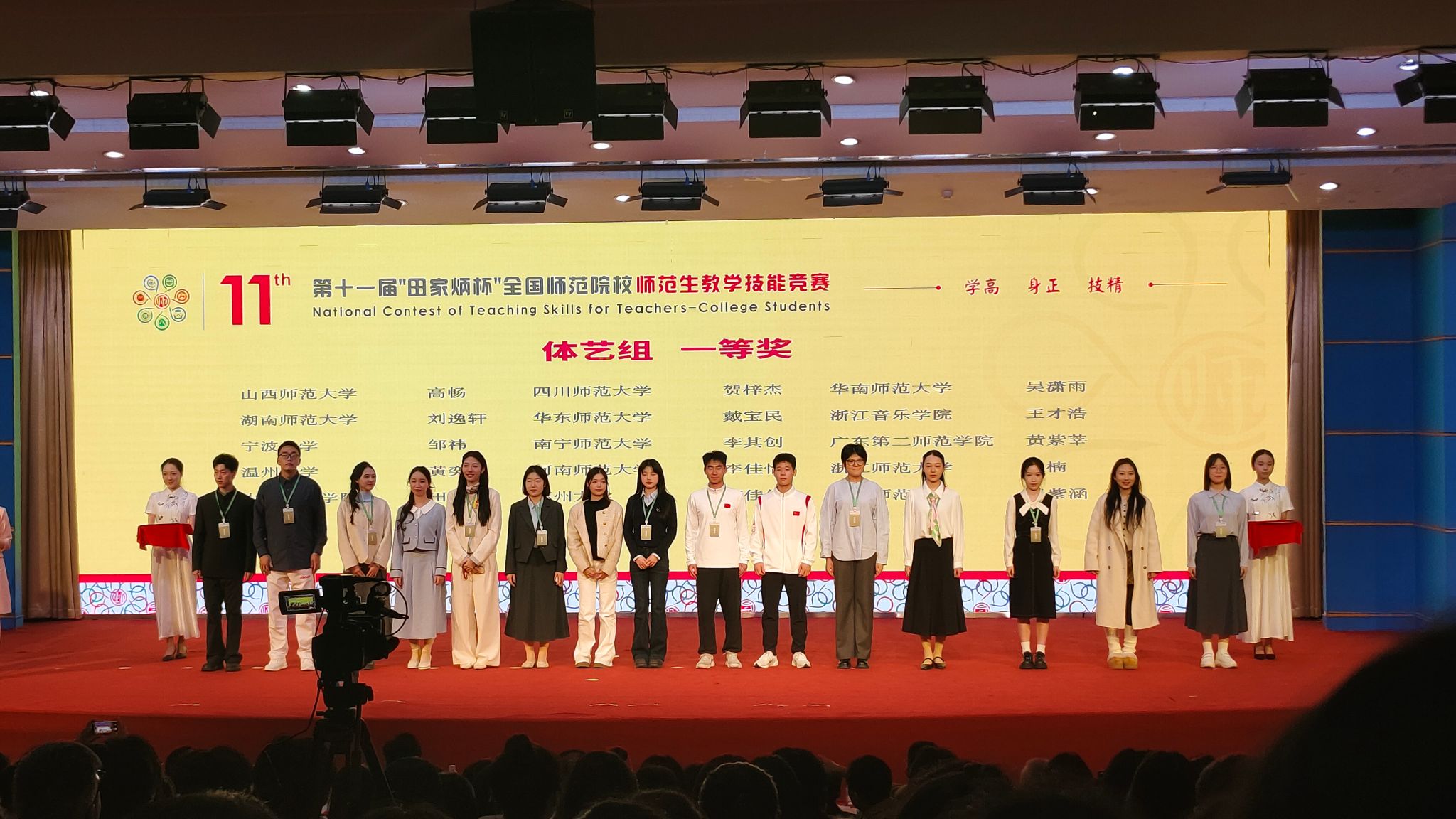 2025年11月28日至30日,第十一届“田家炳杯”全国师范院校师范生教学技能竞赛决赛在浙江师范大学圆满落幕。经过激烈角逐,我校选派学子表现优异,共荣获一等奖2项、二等奖5项、三等奖2项,总计9个奖项的优异成绩。